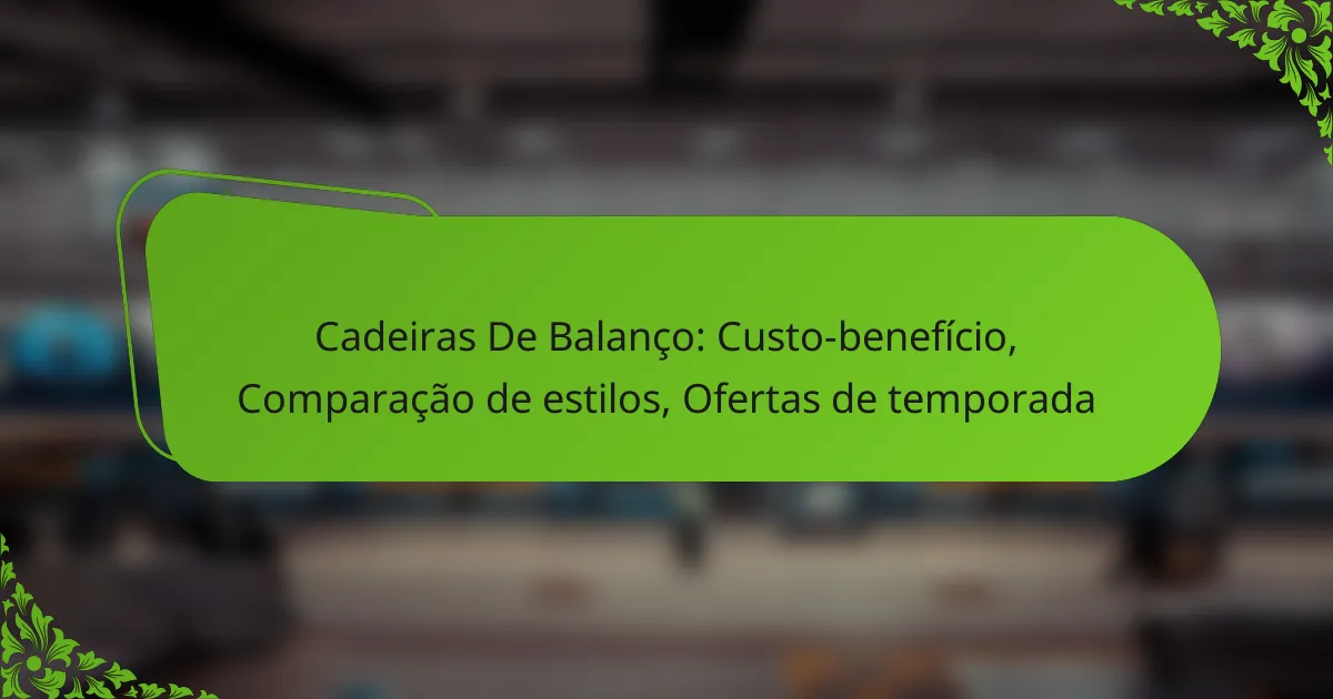 O custo-benefício das cadeiras de balanço é avaliado pela relação entre o preço, a qualidade e os benefícios que elas oferecem. Essas cadeiras podem variar bastante em preço, mas muitas vezes representam um investimento que melhora o conforto e a saúde do usuário.