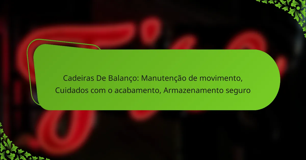 Para garantir a manutenção do movimento das cadeiras de balanço, é essencial realizar verificações regulares e cuidados com os mecanismos de balanço. Isso assegura que a cadeira funcione suavemente e prolonga sua vida útil.
