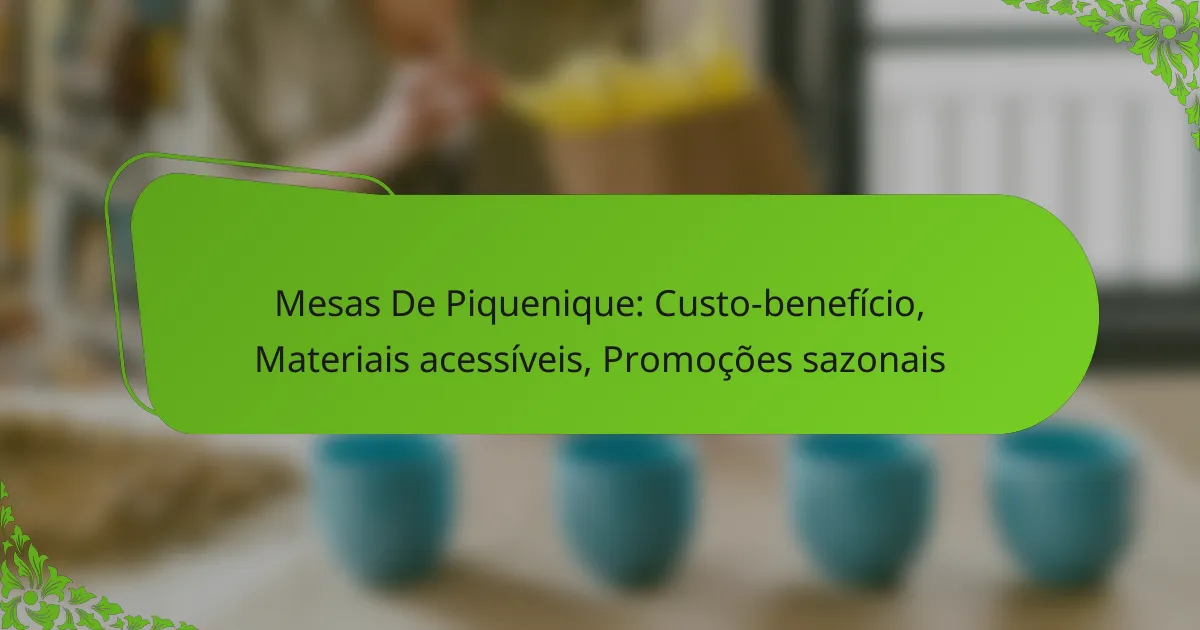 Para escolher mesas de piquenique, considere o uso pretendido e o espaço disponível. Avaliar materiais acessíveis e promoções sazonais também pode ajudar a encontrar a melhor opção em termos de custo-benefício.